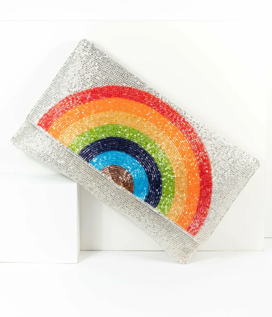 Ricki Designs Silver Beaded Rainbow Clutch