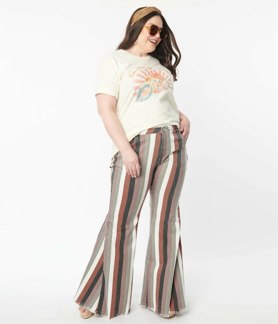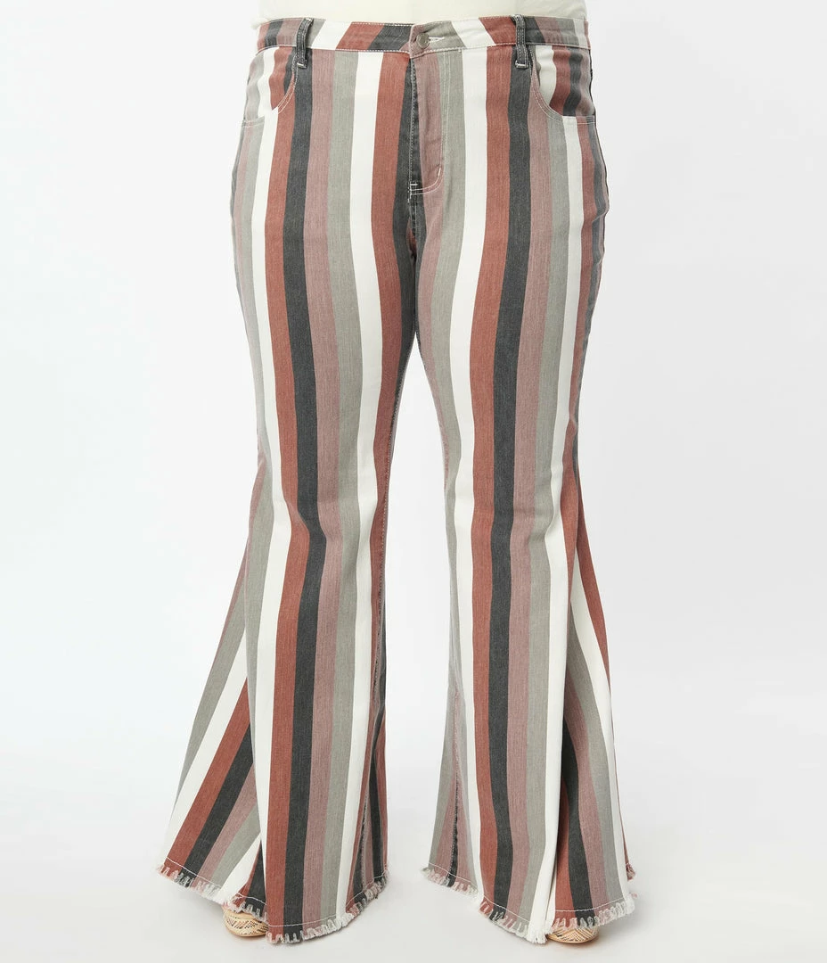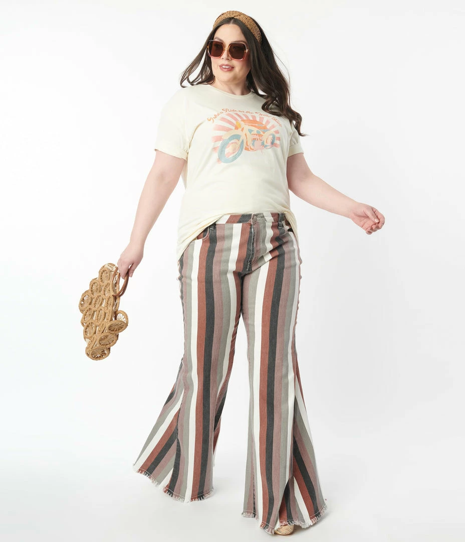 Saints & Hearts Plus Size Muted Earth Striped Bell Bottom Jeans