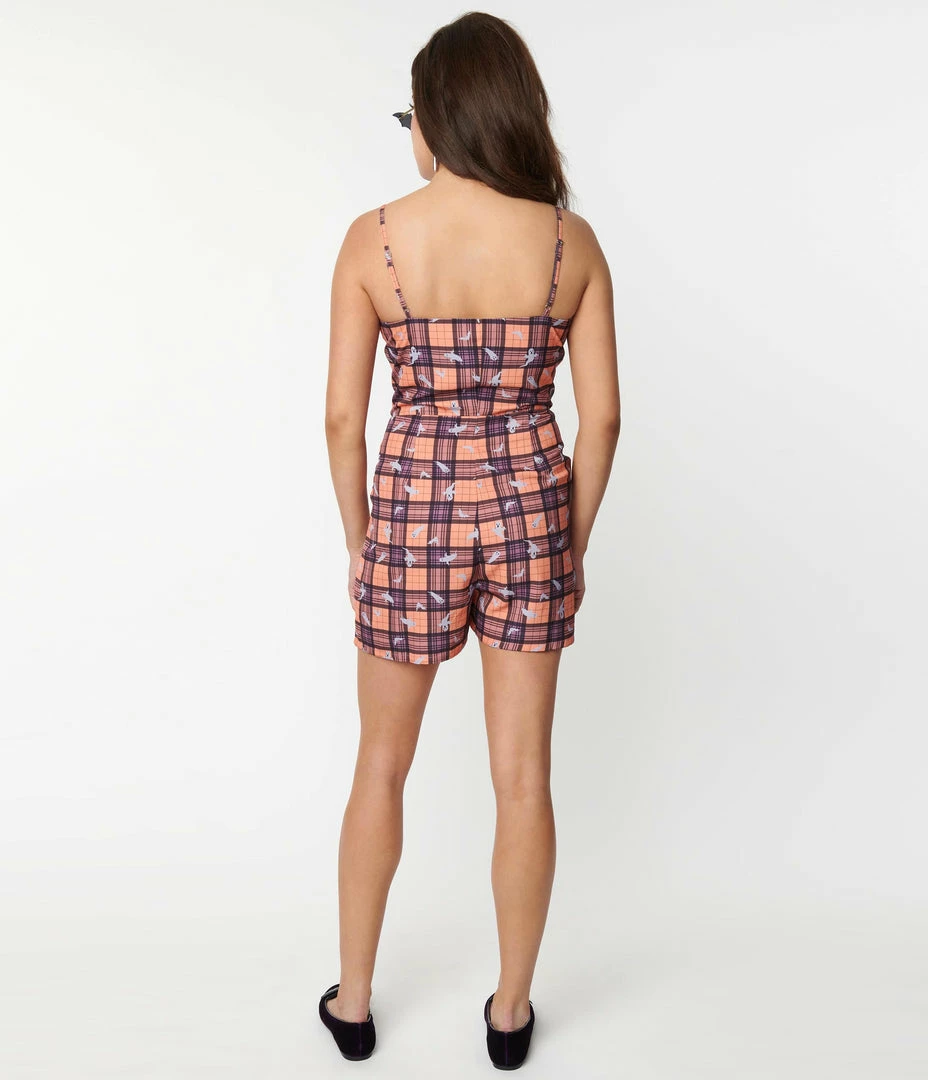 SHEEN Clothing Ltd Orange & Purple Plaid & Ghosts Romper Dresses