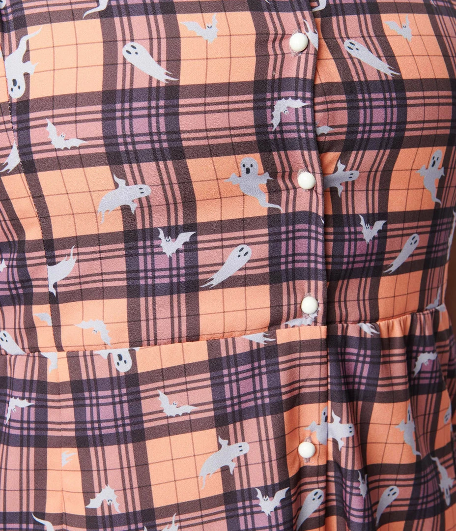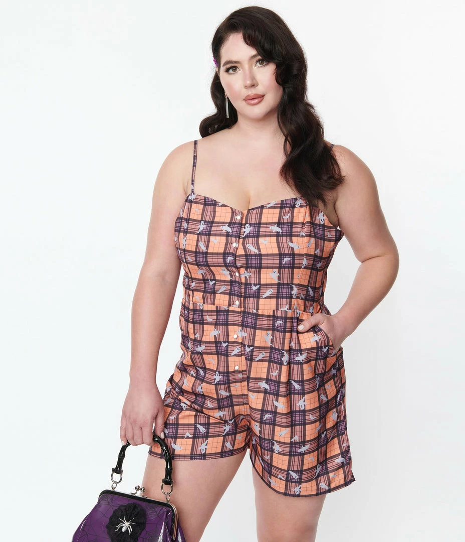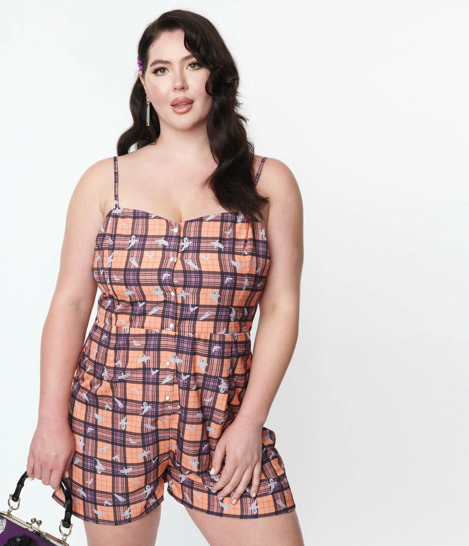 SHEEN Clothing Ltd Plus Size Orange & Purple Plaid & Ghosts Romper
