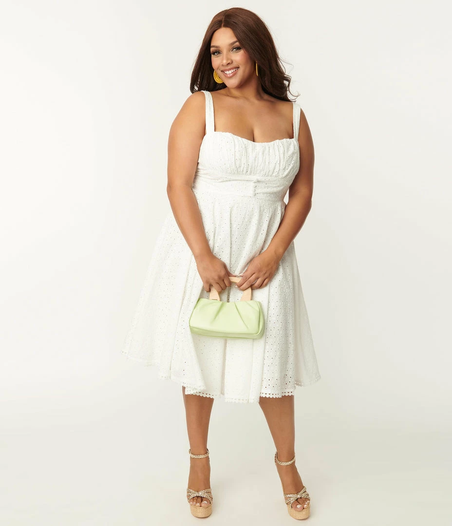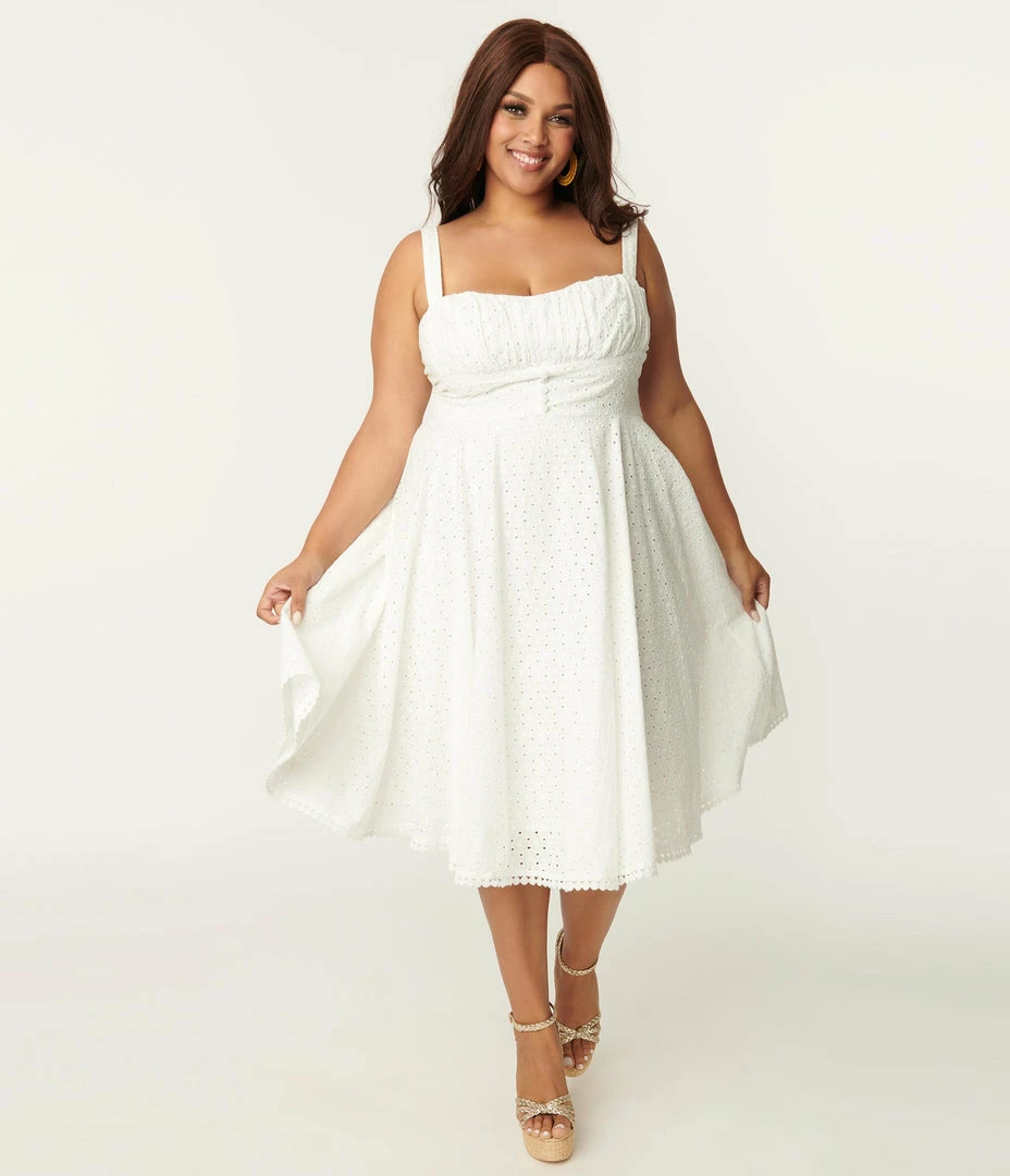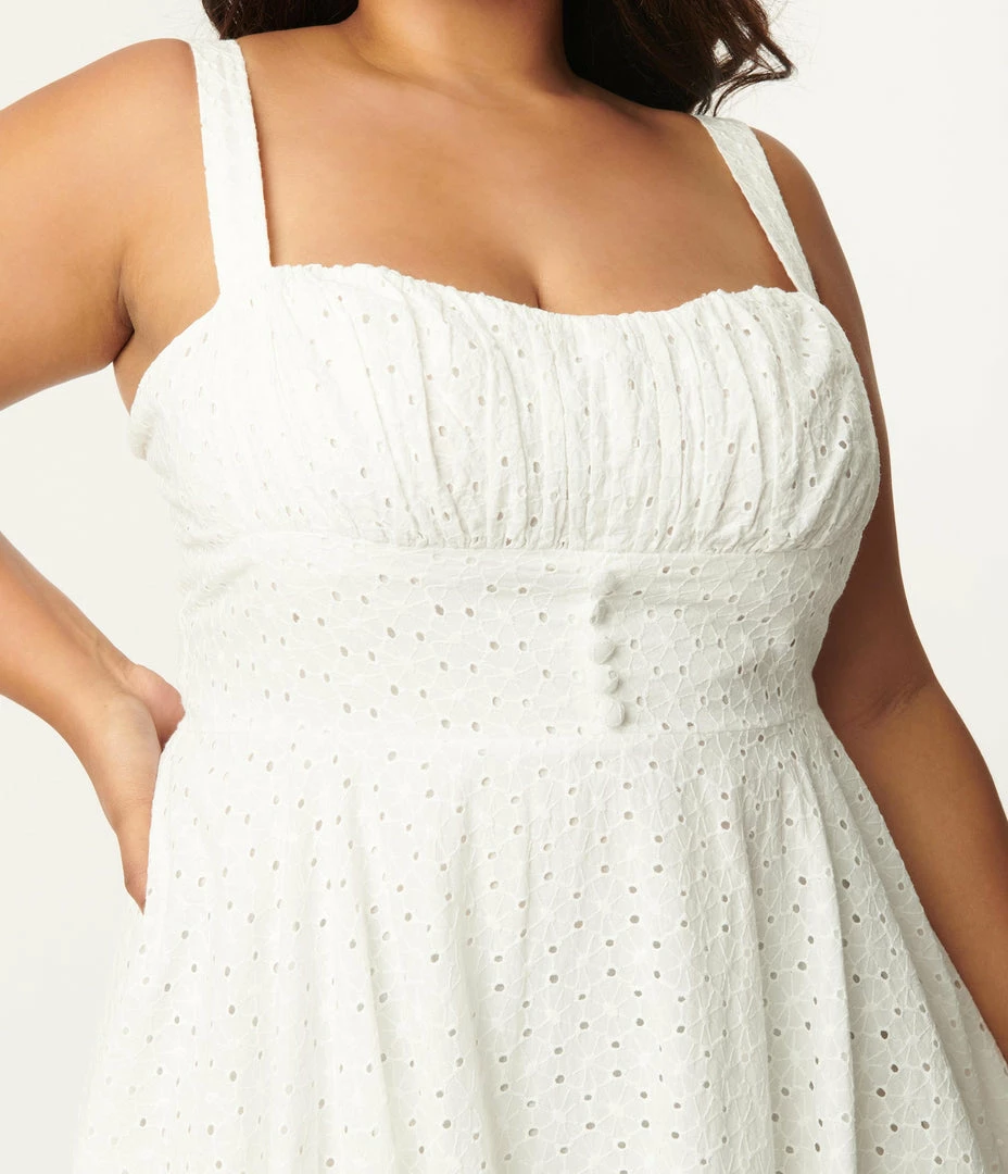 SHEEN Clothing Ltd Prairie Plus Size Vintage Style White Eyelet Valerie Swing Dress