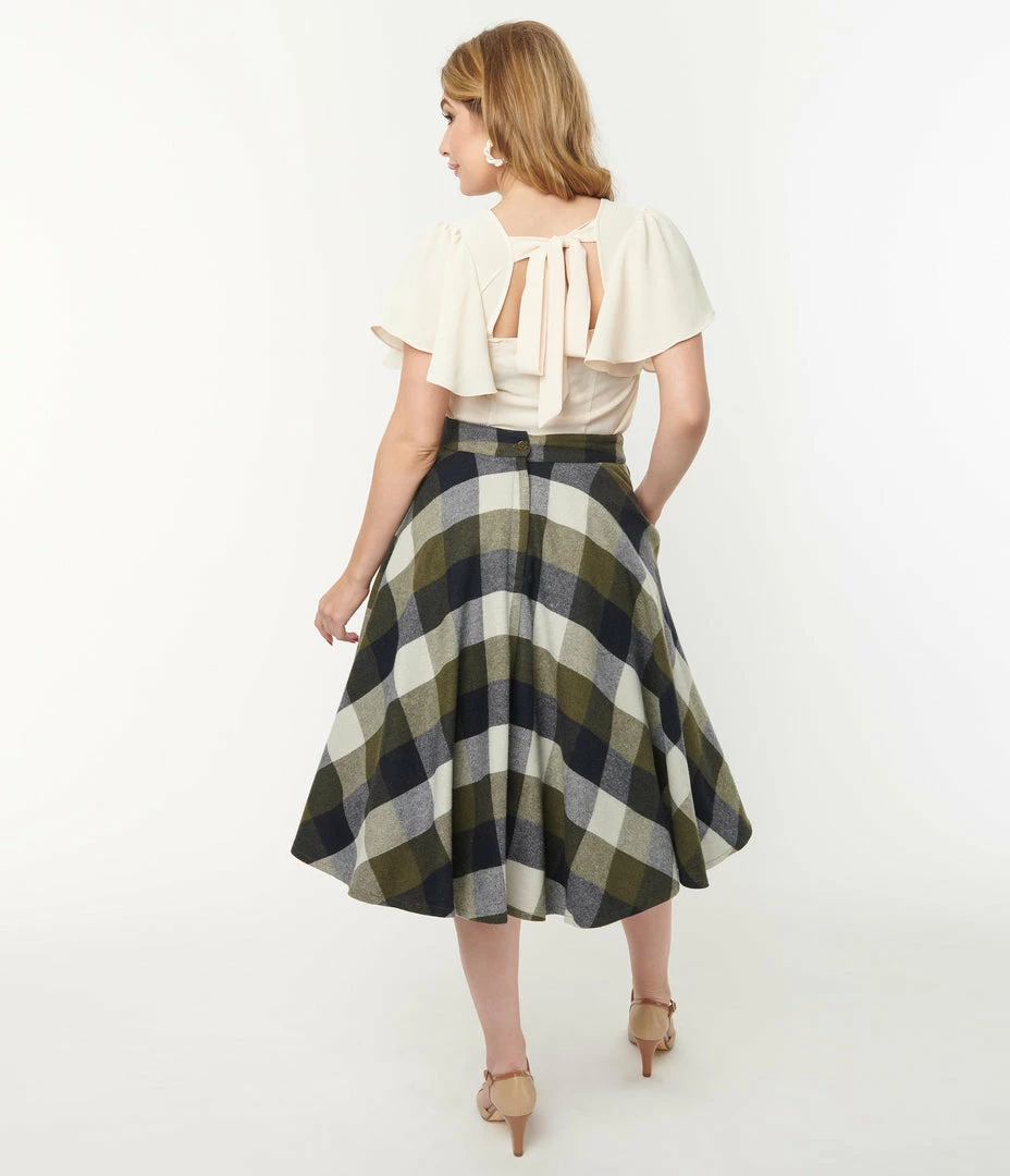 SHEEN Clothing Ltd Retro Style Navy & Hunter Green Plaid Sophie Swing Skirt Bottoms