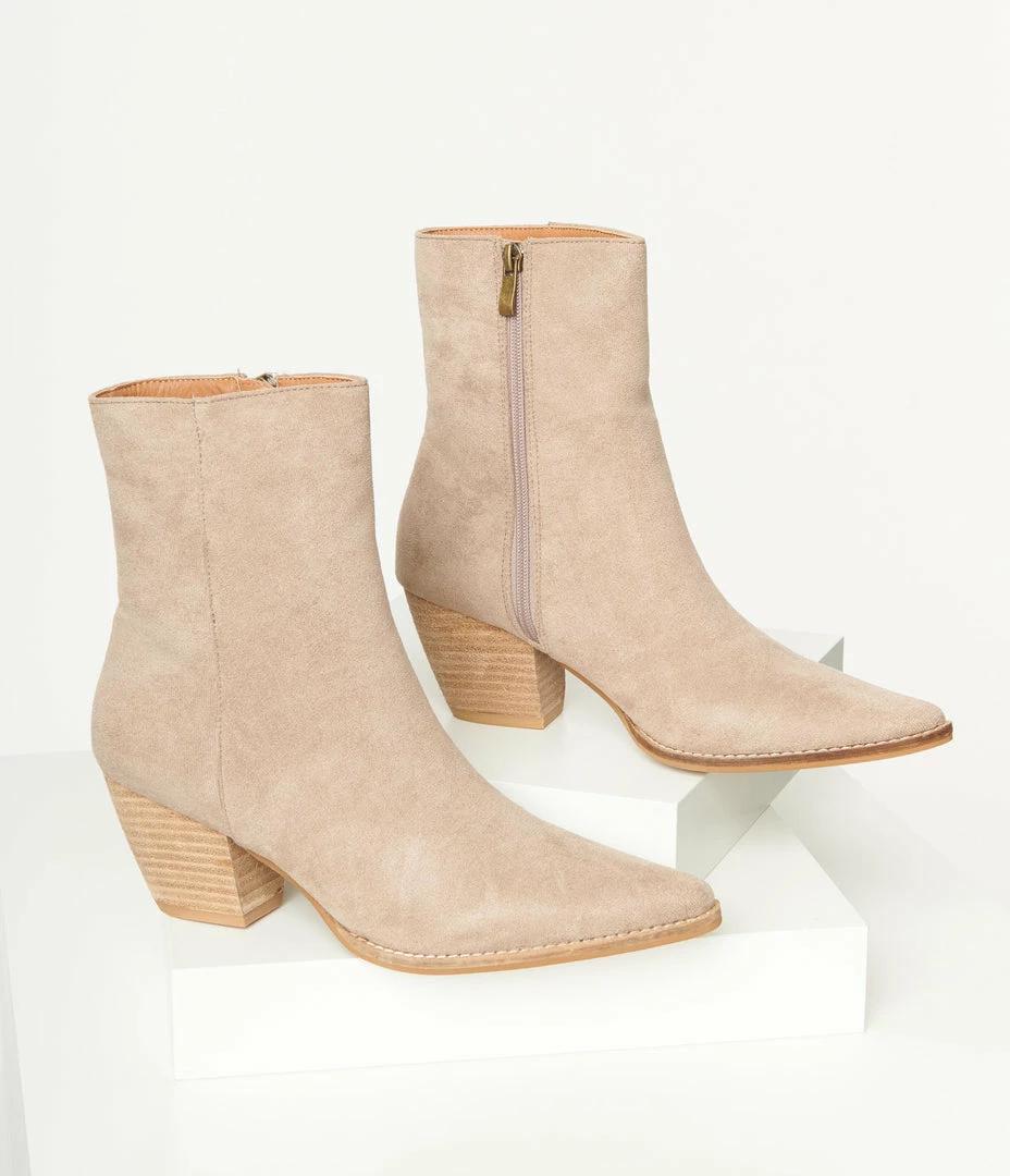 Be the first to review “Shoe Addict Taupe Suede Pointed Toe Bootie” Cancel reply
