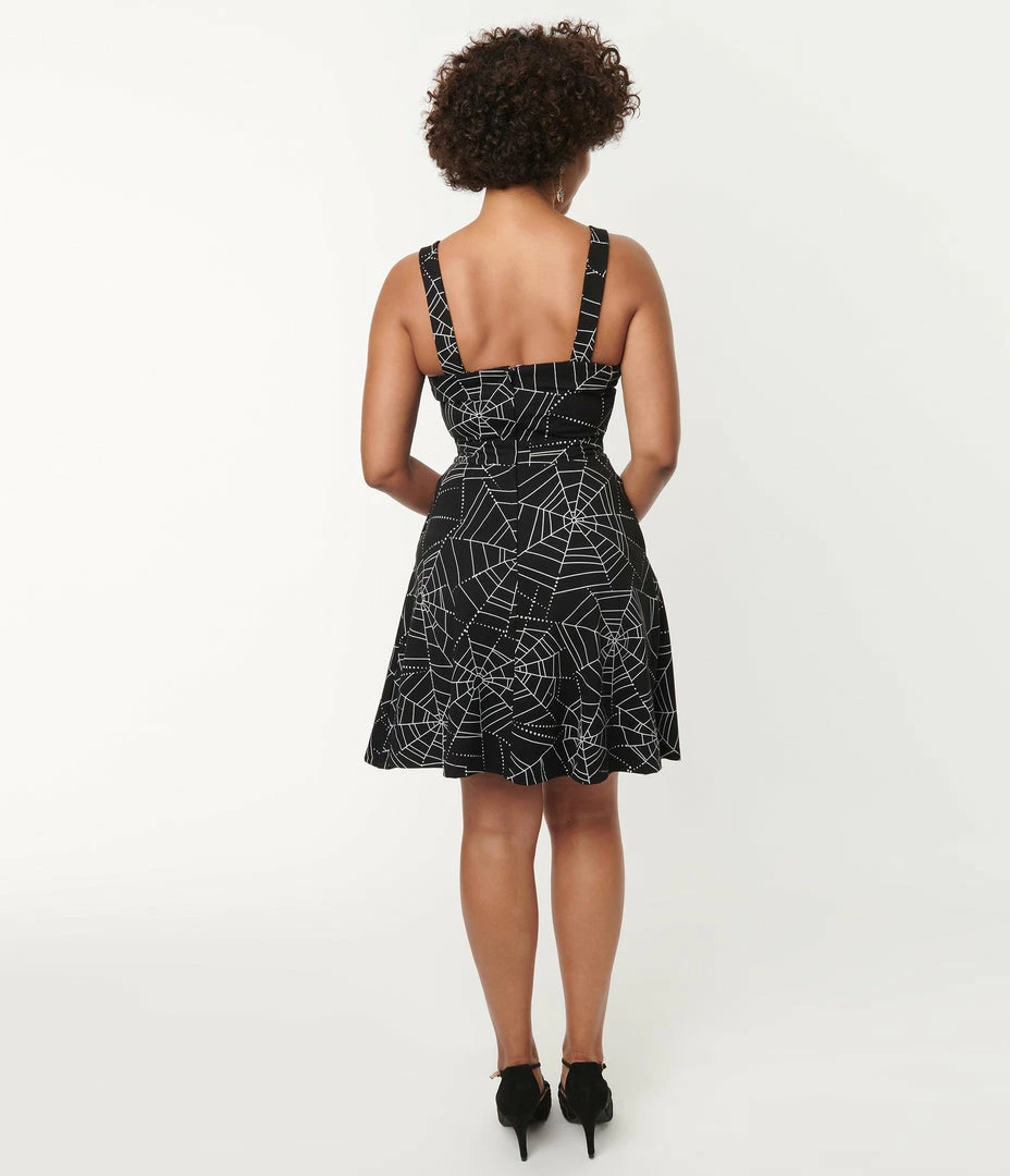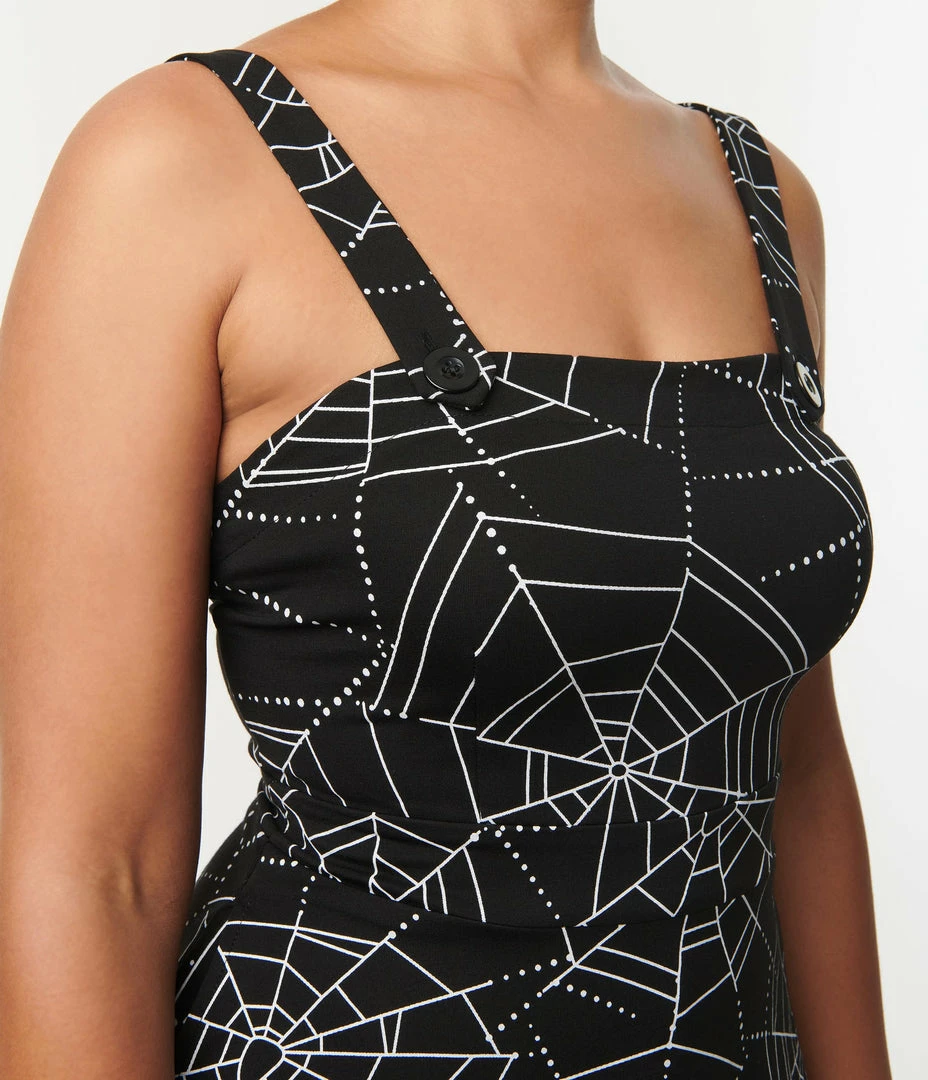 Silver Stop Inc. (Voodoo Vixen) Voodoo Vixen Black & Spiderweb Pinafore Flare Dress