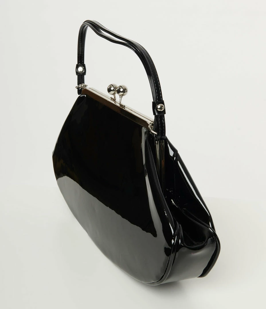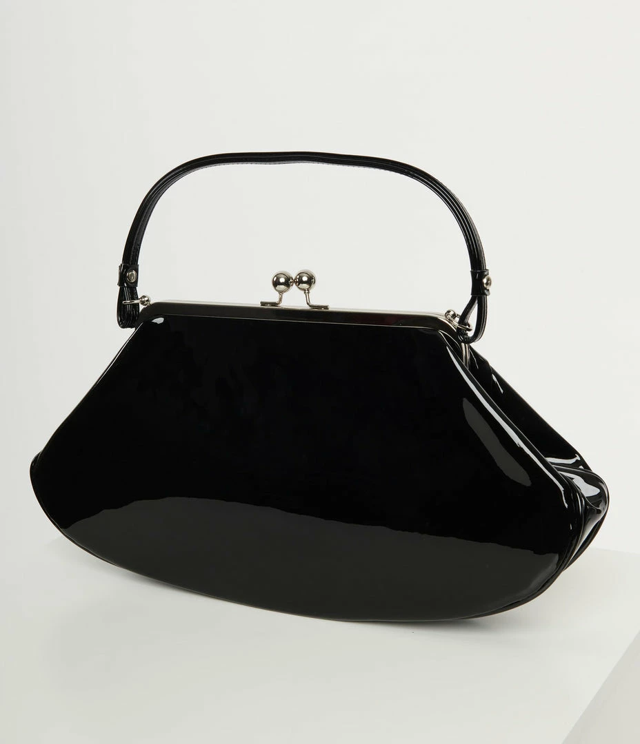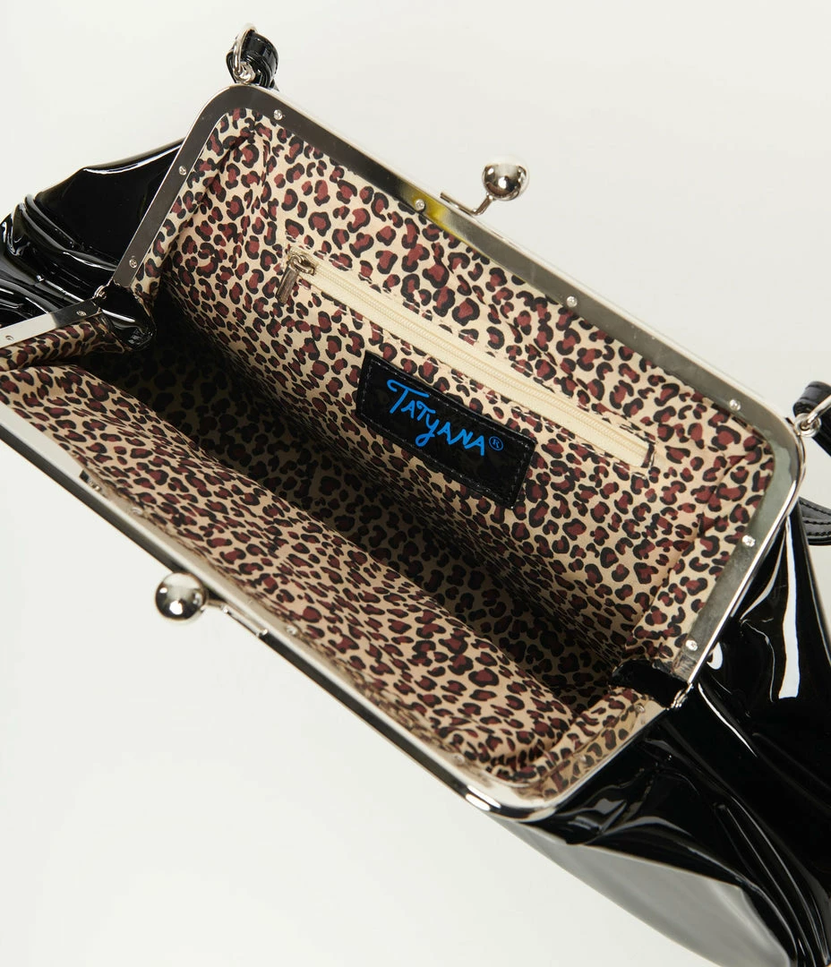 Tatyana Black Patent Leatherette Loveboat Handbag Accessories