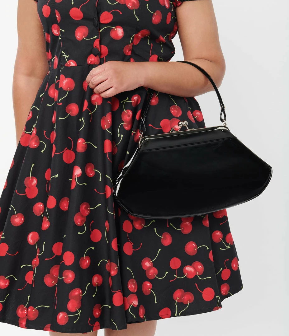 Chic and classy for the retro minded gals, this elegant purse from Tatyana is crafted in black patent leatherette in a classic vintage style frame handbag. Outfitted with a top handle and a top kiss lock closure that opens to a fabric interior with a zipper pocket!