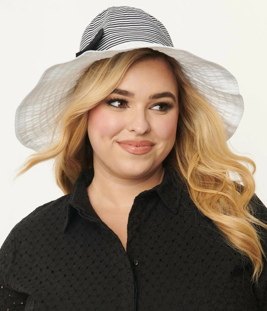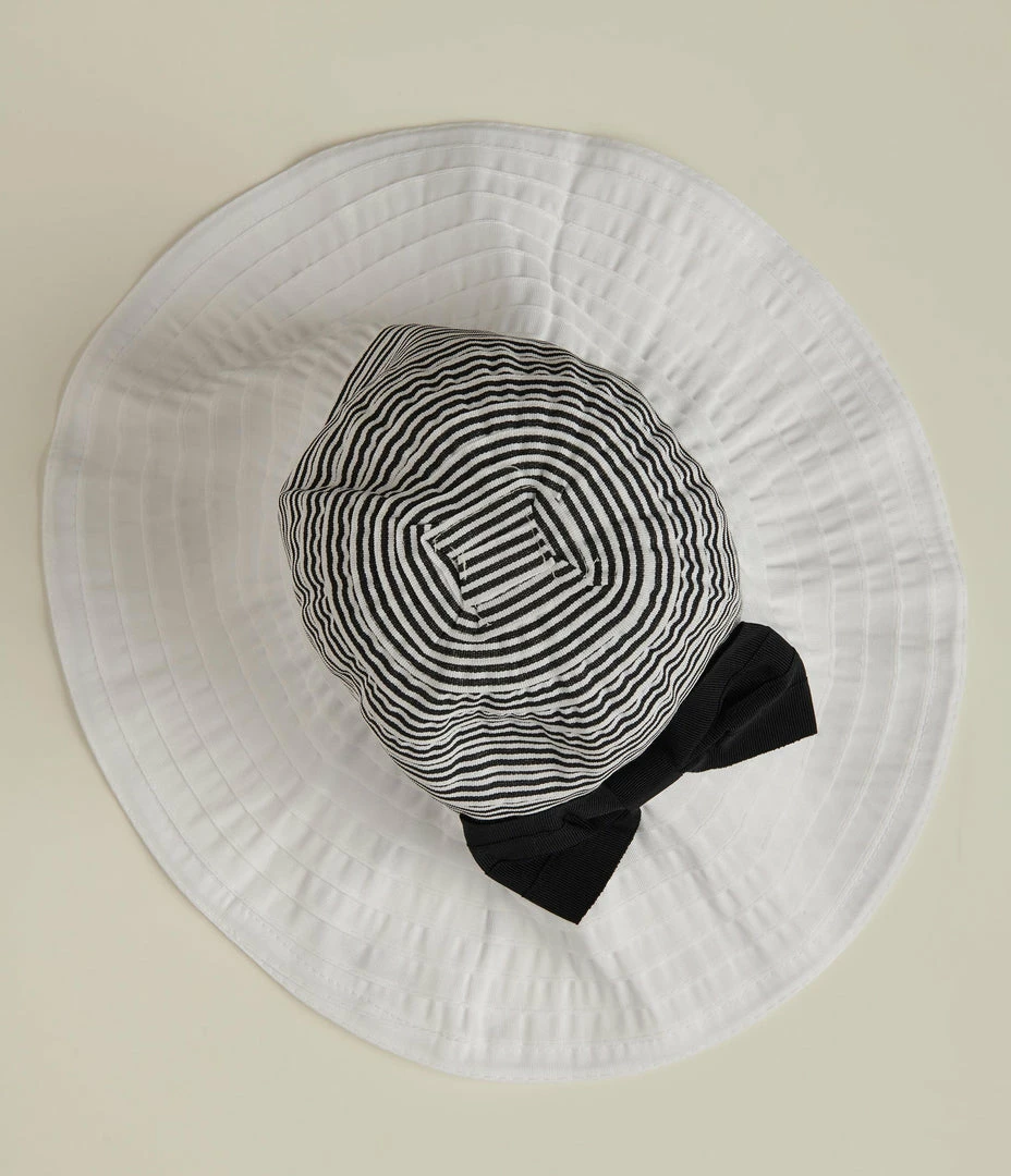 Too Too Hat 1950s White & Black Stripe Tiered Sun Hat
