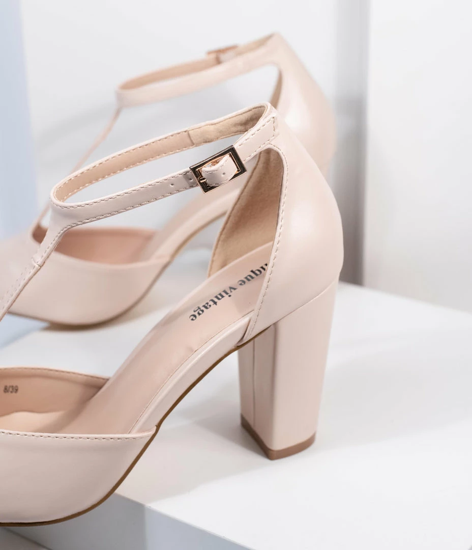 Unique Vintage Beige Leatherette T-Strap Astaire Pumps Unique Vintage Brand