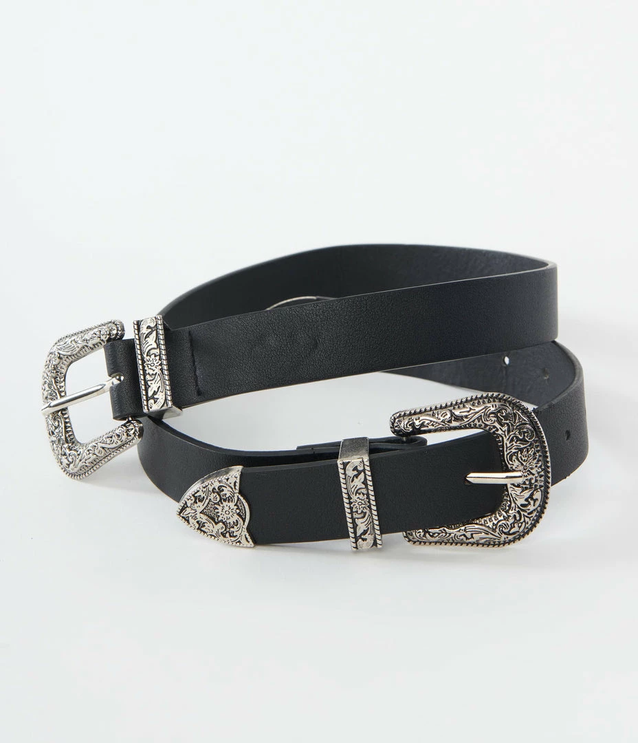 Unique Vintage Black Double Buckle Belt Unique Vintage Brand