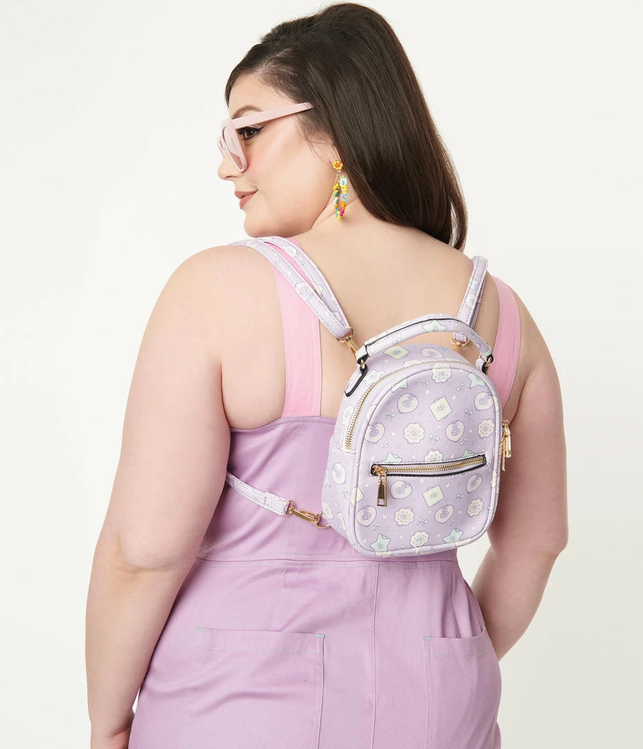 This delightful mini backpack, in collaboration with Polly Pocket, is crafted in a sturdy lilac purple leatherette and features a sweet print of Polly’s infamous compact dollhouses. Removable and adjustable straps and a top handle provide versatile carry while a top zipper opens to a fabric interior, complete with inner slip and inner zipper pocket. This sweet accessory is complete with a front zipper pocket for easy organization!