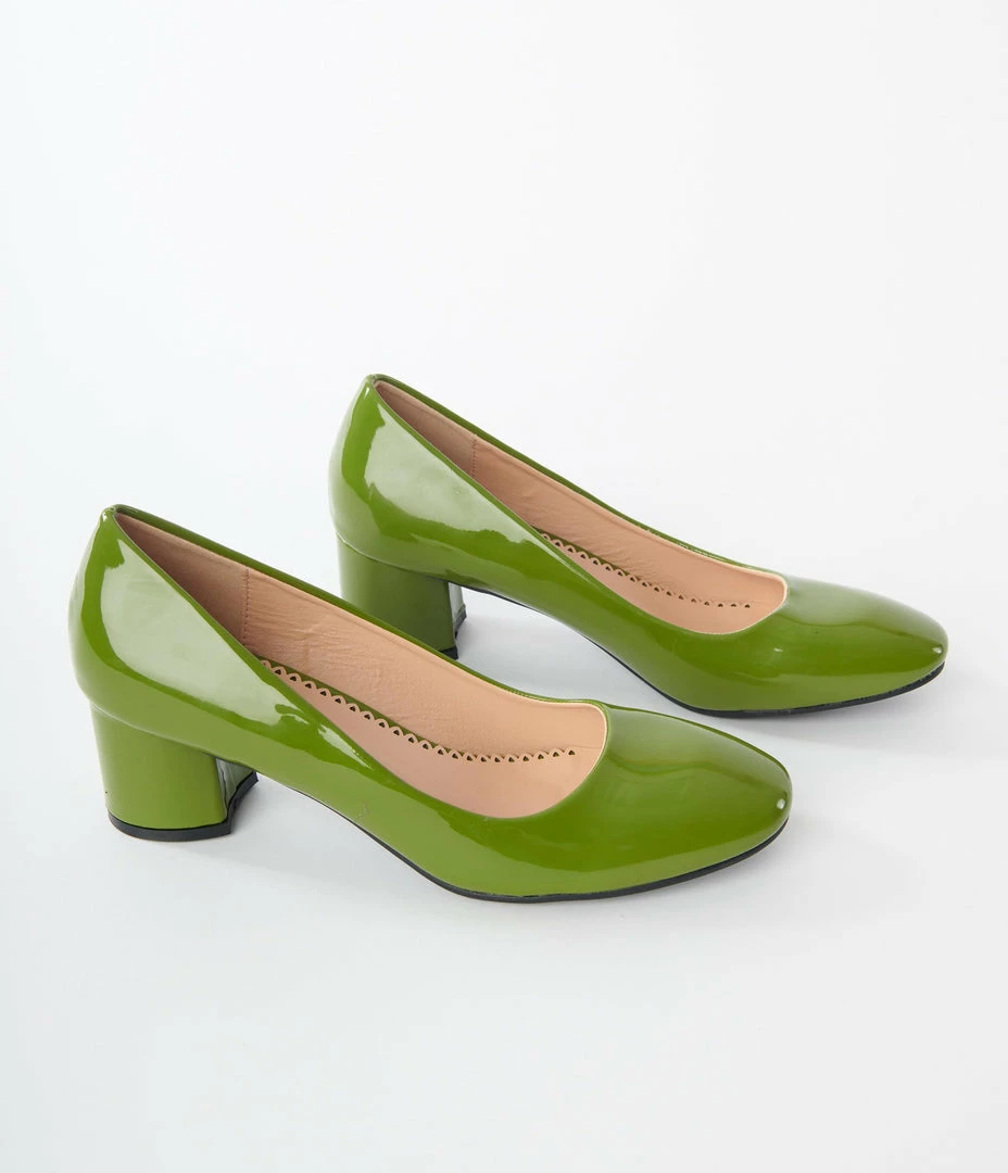 Unique Vintage Brand Unique Vintage Green Patent Block Heels