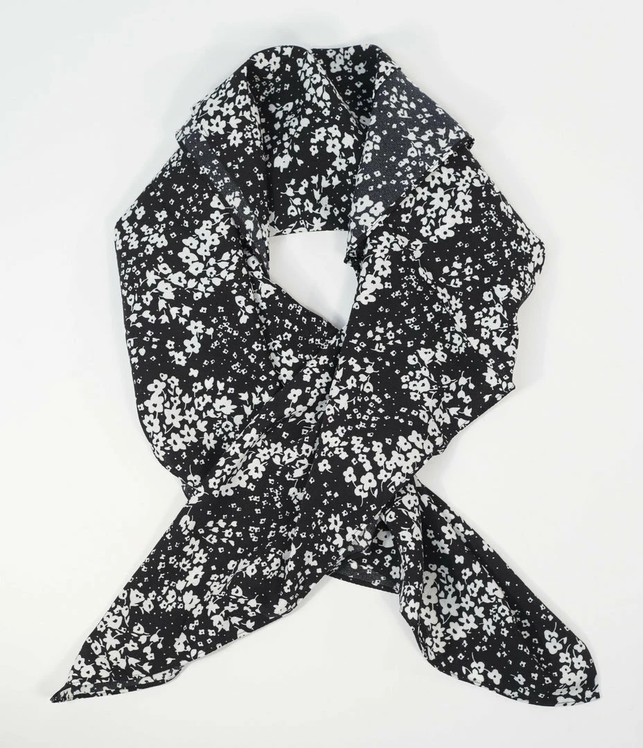 Change your pin-up form on a whim with this darling hair scarf set from Unique Vintage! Crafted in a lightweight vintage inspired chiffon-style fabric, switch it up from a black ditzy floral print or to a brown ditzy floral print!