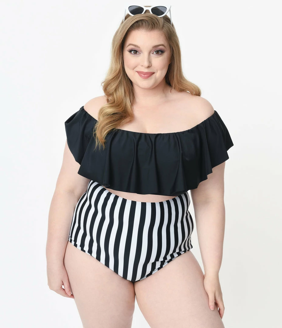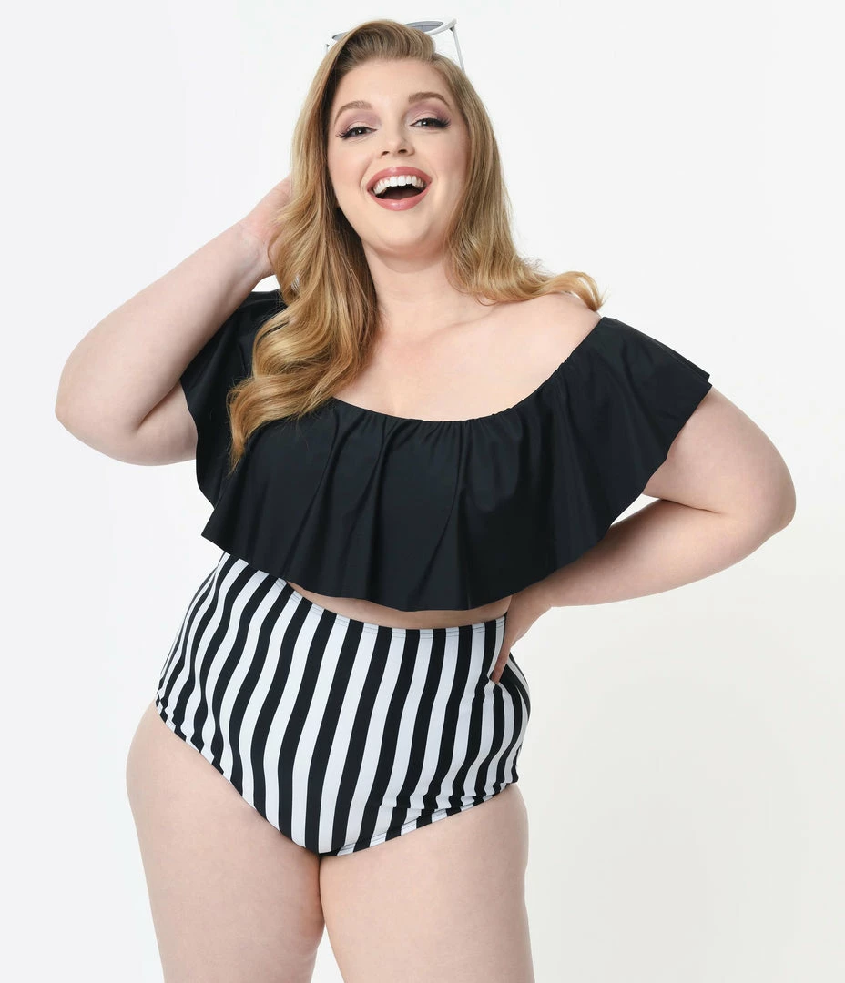 Be the first to review “Unique Vintage Plus Size Black & White Stripe High Waist Louise Swim Bottoms” Cancel reply