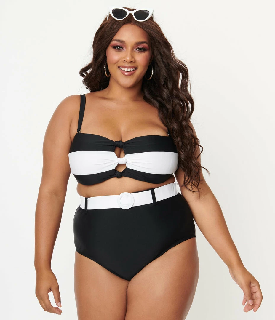 Be the first to review “Unique Vintage Plus Size Black & White Stripe Knot So Fast Swim Top” Cancel reply