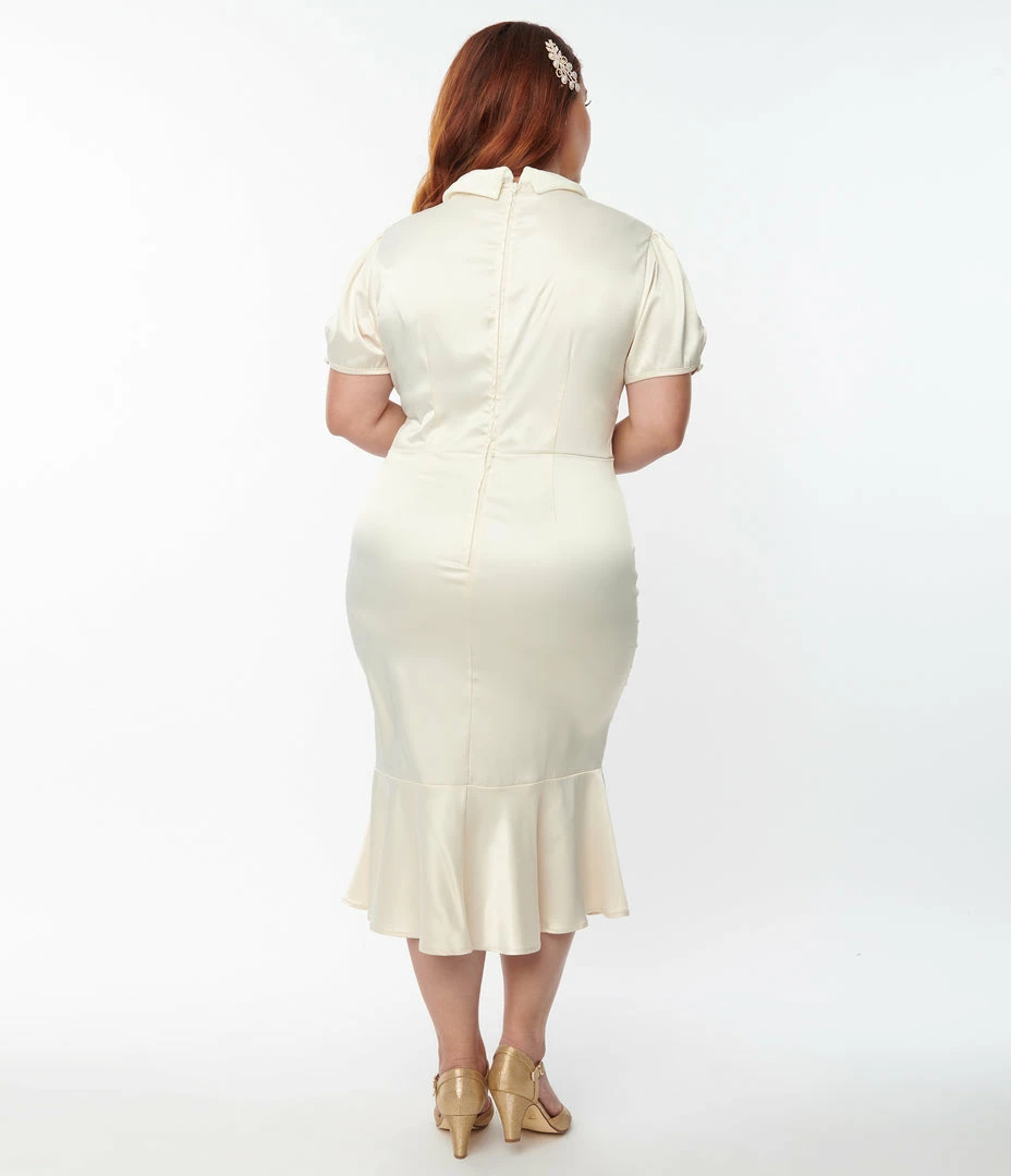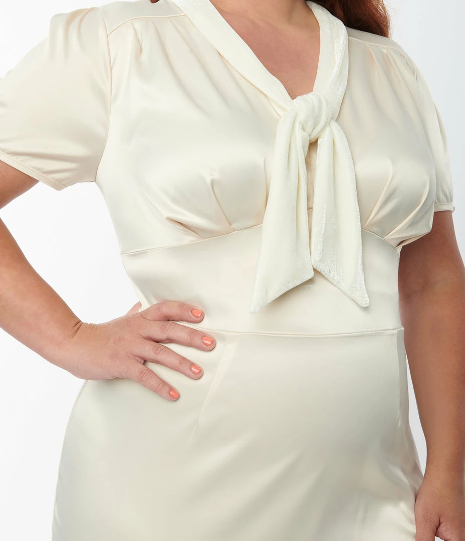Unique Vintage Plus Size Ivory Satin Holloway Bridal Dress