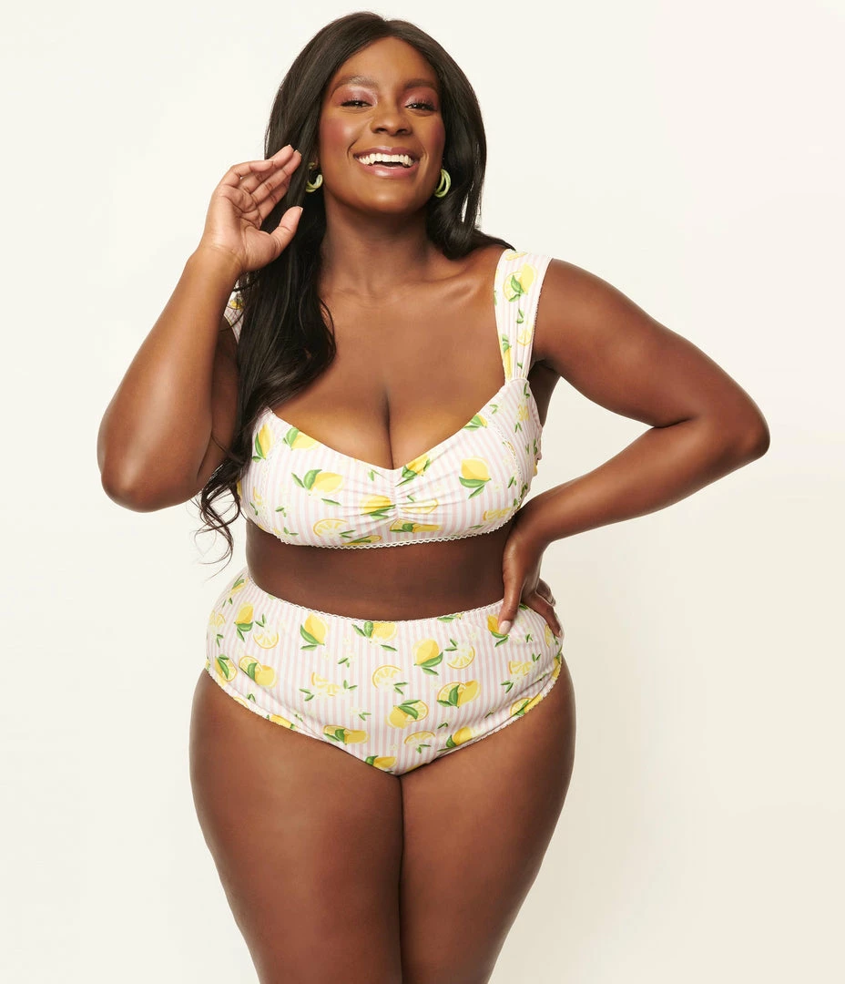 Unique Vintage Plus Size Light Pink Stripe & Lemons Daphne Swim Bottoms