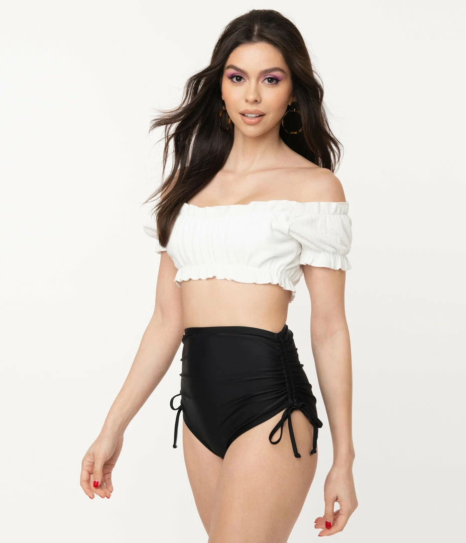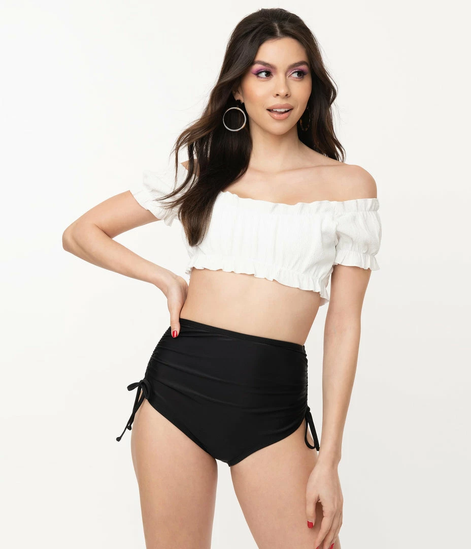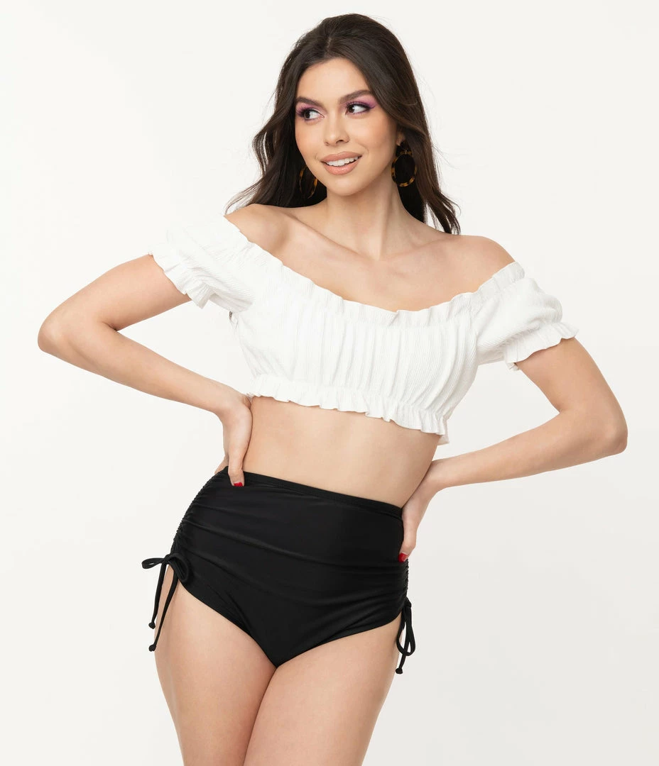 SKU: unique-vintage-6560966606950 Categories: 1950s, Clothing, Shop By Era, Swimwear, Tops, Two Piece, Unique Vintage Brand Swim Tags: 1950s, Bright Whites, Mix and Match, Off the Shoulder, Sale, Two Piece, UV Brand, UV Swim